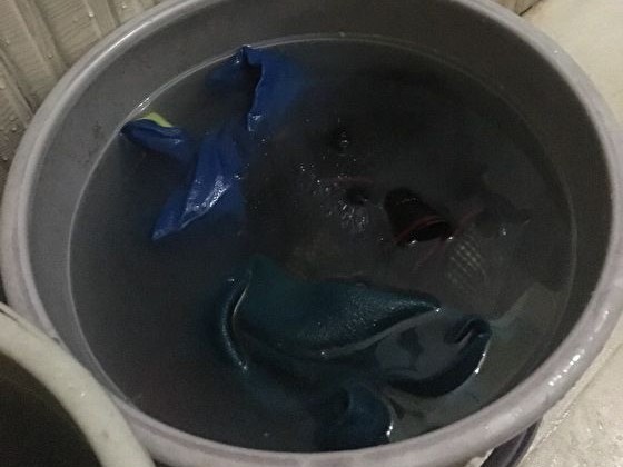 写真では分かりにくいですが、水が透明になったら絞って干します。